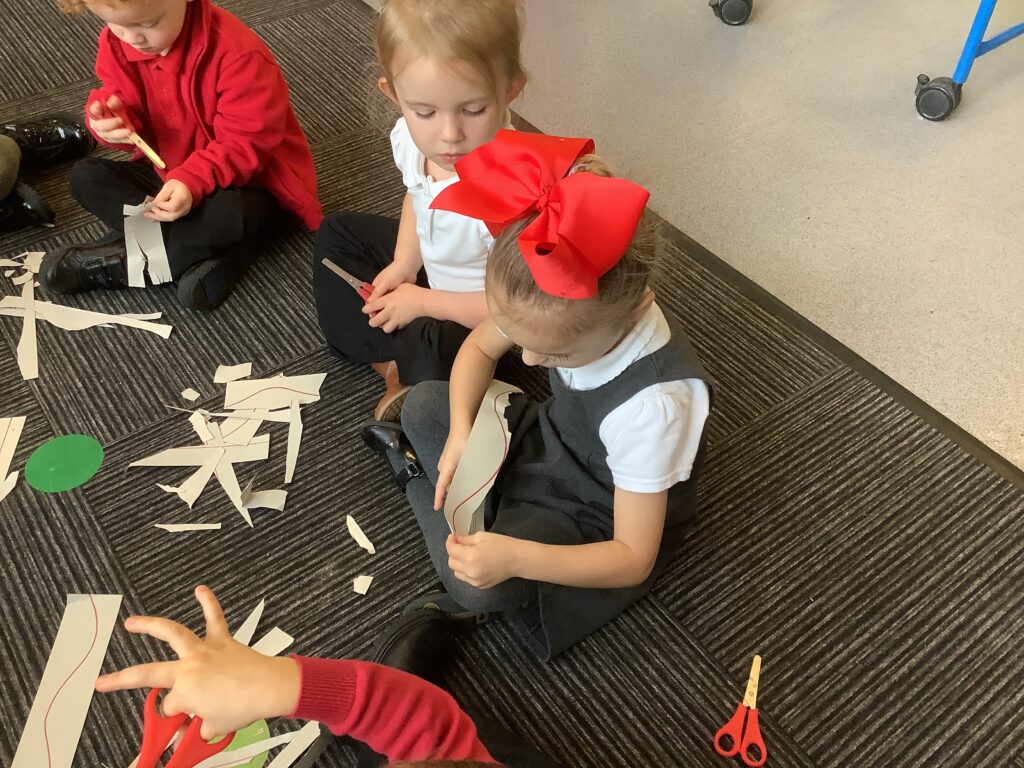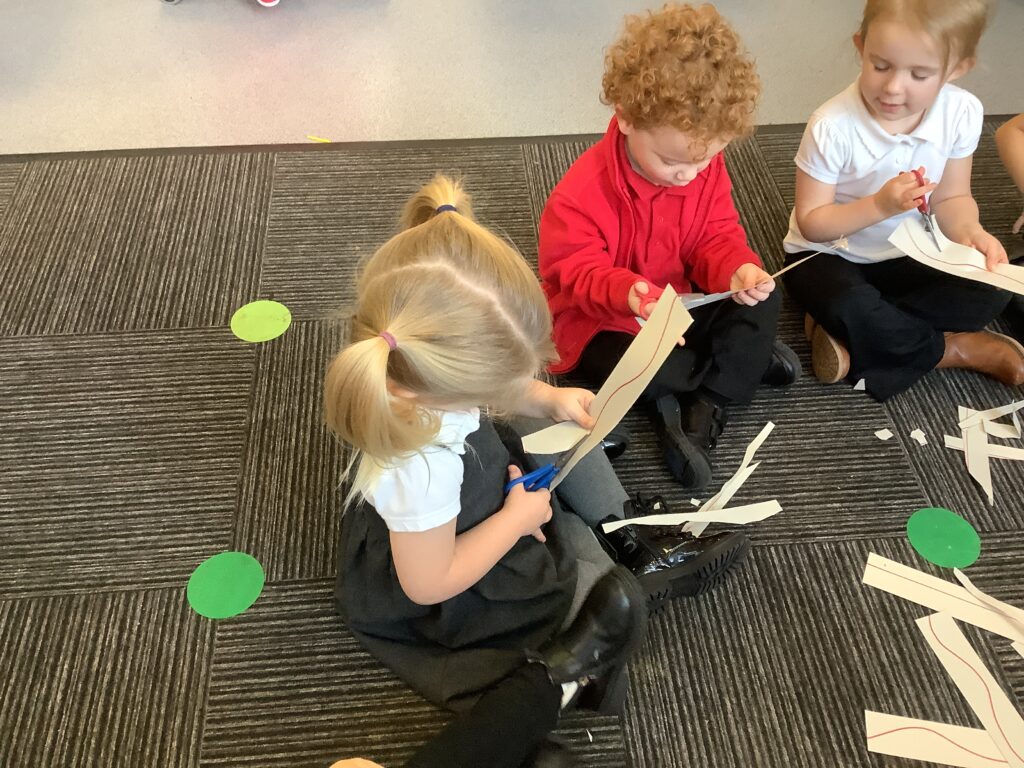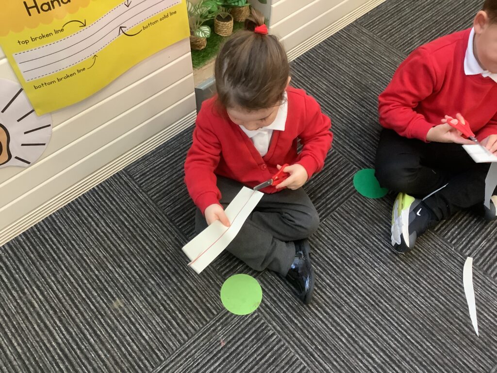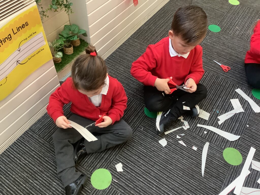 This week in crew Frost the children have been learning how to use scissors. The children first discussed how to use the scissors safety and what items we cut. We then practiced how we hold the scissors for moving around the classroom and when we are ready to cut. We then challenged the children to follow the patterned lines on the sheets. The children astonished us how they were able to maneuver their way around the task following the patterned sheets. We can’t wait to keep practicing this fine motor task.