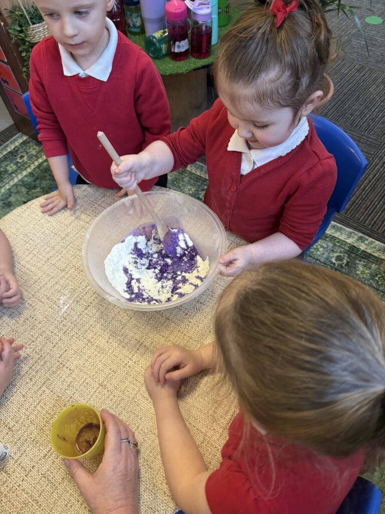 This week we have launched our character traits within crew Frost. This week we are focusing courage. Courage for crew is a Lion character, who is brave and tries new things even when hesitant. Courage asks questions and chooses to do hard work not just easy work. To build on our courage we had some volunteers come and bake play dough! Seeing and feeling new textures can be quite a daunting thing for children, but we are so proud they dove straight in! Even sharing, taking turns, and waiting is a courageous thing to do. Well done crew Frost for trying something new.
