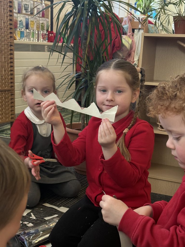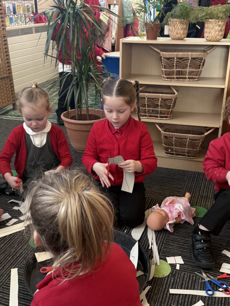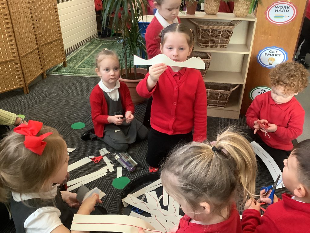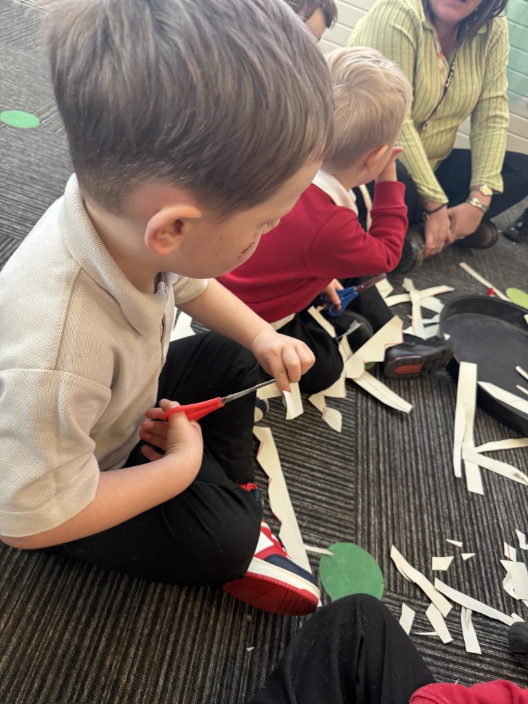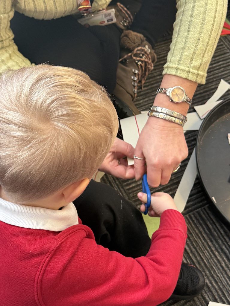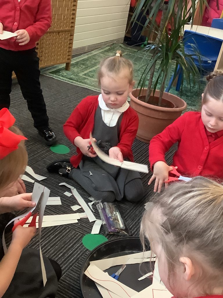 During this session, the children were given the challenge of following pre-made cutting lines. This activity encourages children to think critically and problem-solve as they work their way through the change in directions, how to hold the paper, and cut using one hand while stabilising the other.