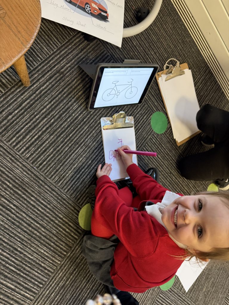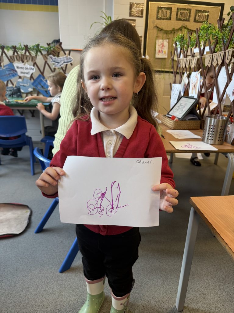 During our We Are On The Move expedition, the children took part in adult-led demonstrations to explore how to create different types of transport, including bikes, planes and boats. This activity supported the children in developing their creative skills and preparing for their final pieces, which will contribute towards a collaborative flap book.