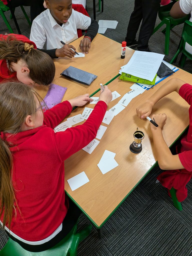 We got active today in Crew White in order to learn this week’s spellings. Each team had to send one person at a time to write a letter of the word that needed to be spelled. The first team to spell the word correctly, won the point. I-N-D-E-P-E-N-D-E-N-C-E!