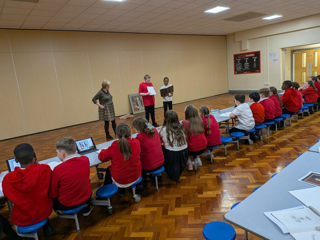 Our visitor also gave the class some helpful critique and advice about their own Tudor portrait work. She encouraged the children to think carefully about proportion, detail and expression, just as artists like Holbein would have done hundreds of years ago.