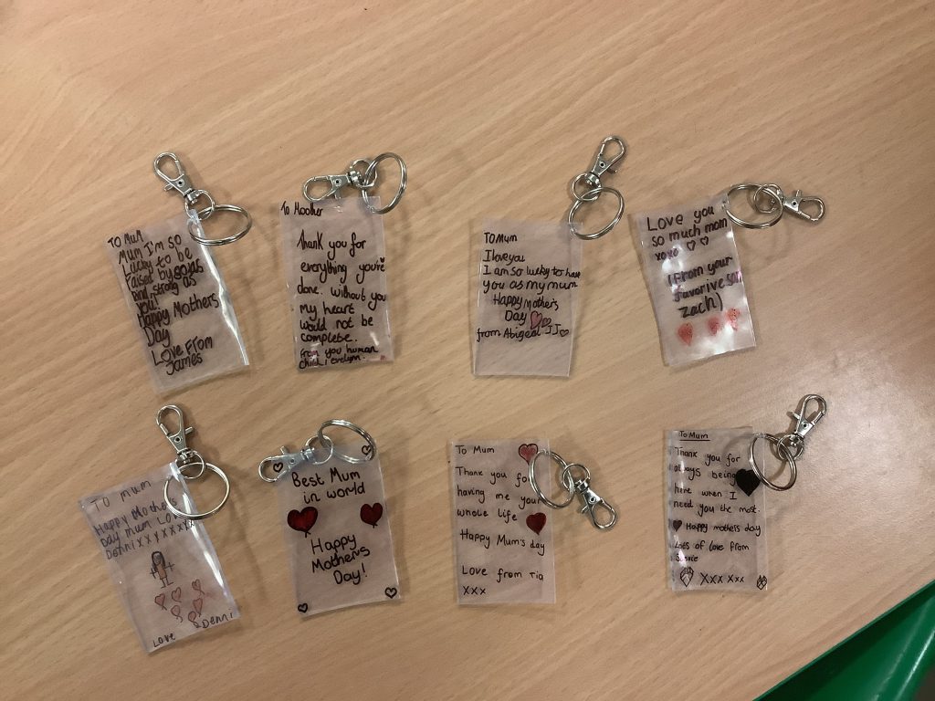 Once cooled, we added key rings so the children could take home their unique creations ready for Mother’s Day. We hope you like them! 🥰