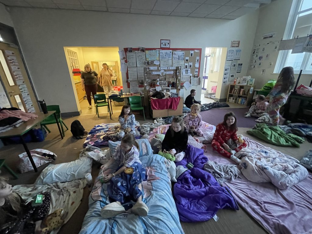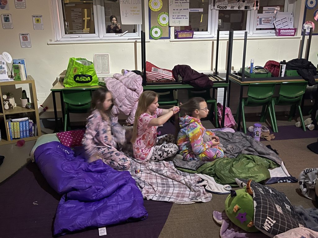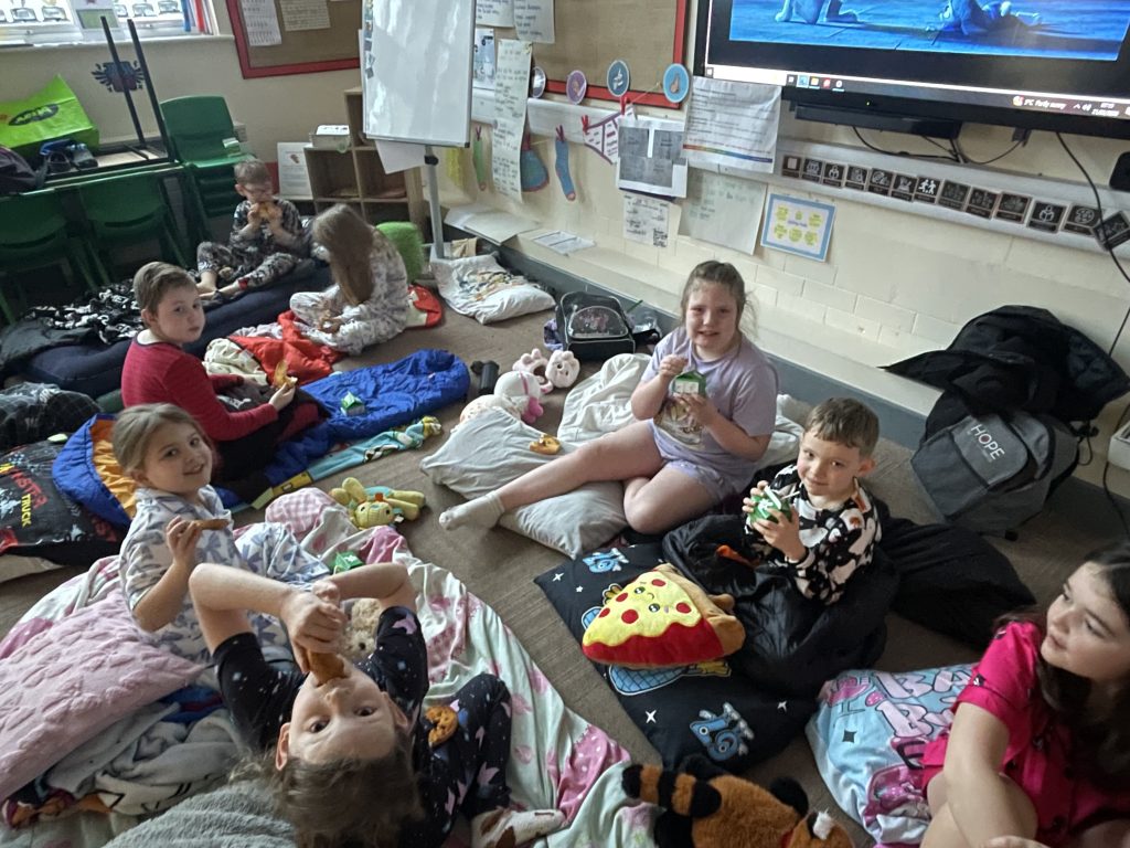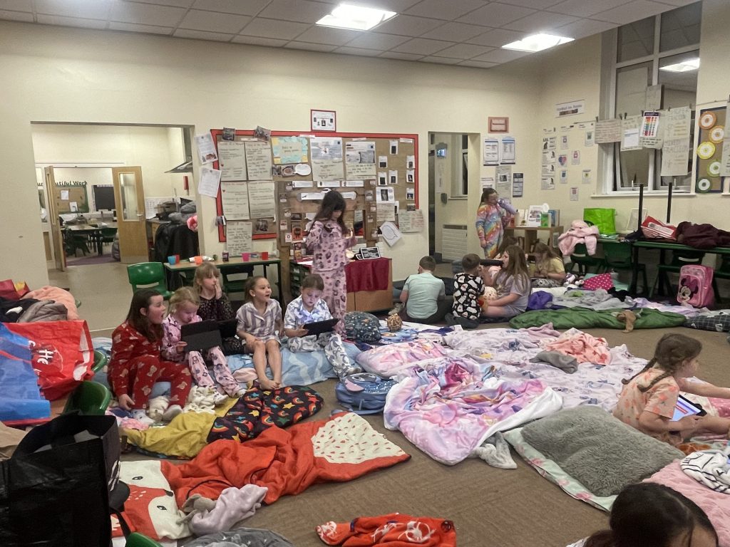 The Year 3 and Year 4 sleepover was an absolute whirlwind of excitement from start to finish. The evening kicked off with a high-energy pizza party and a thrilling session of glow-in-the-dark dodgeball that turned the hall into a neon battlefield. After the adrenaline settled, the children put their thinking caps on for a series of competitive quizzes before winding down with a cozy film marathon. Following a night of (mostly) sleeping, the fun continued into the next day with a morning of games, leaving everyone exhausted but buzzing with fantastic memories.