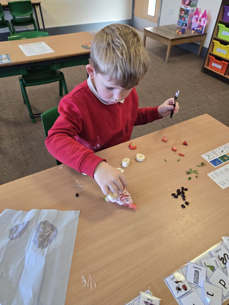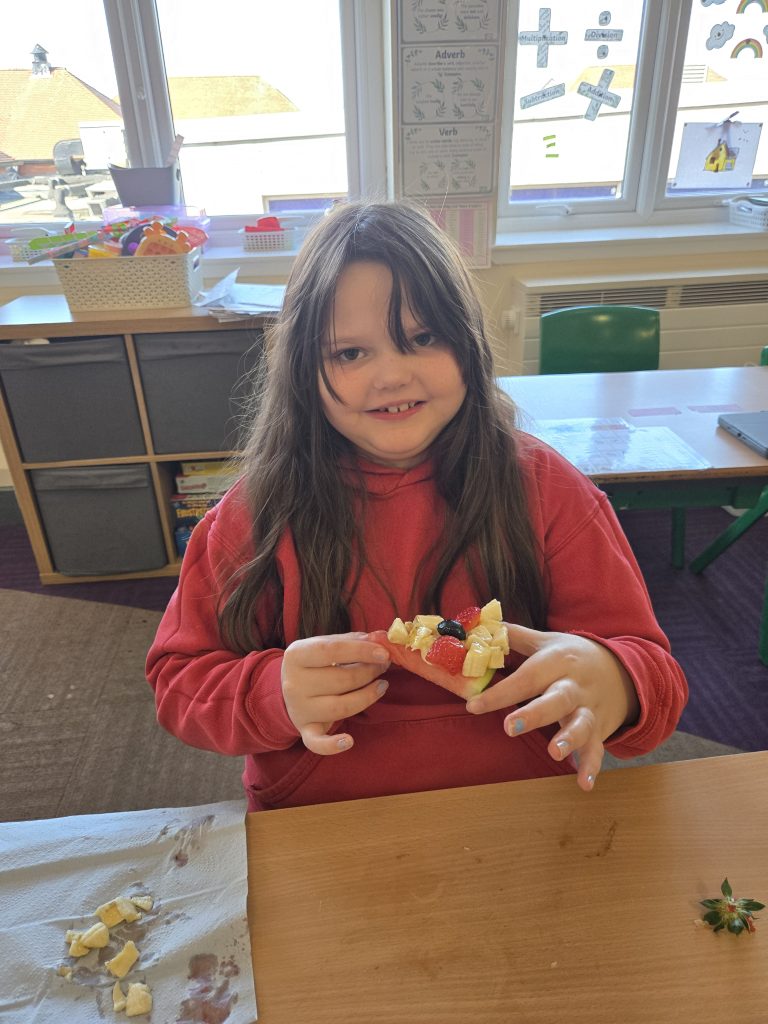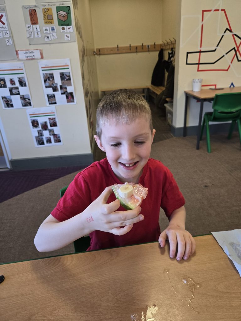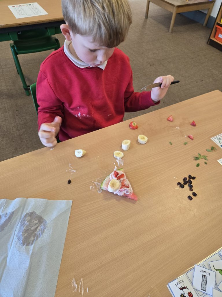 In life skills today the children have enjoyed making watermelon pizza using lots of different fruit and yoghurt