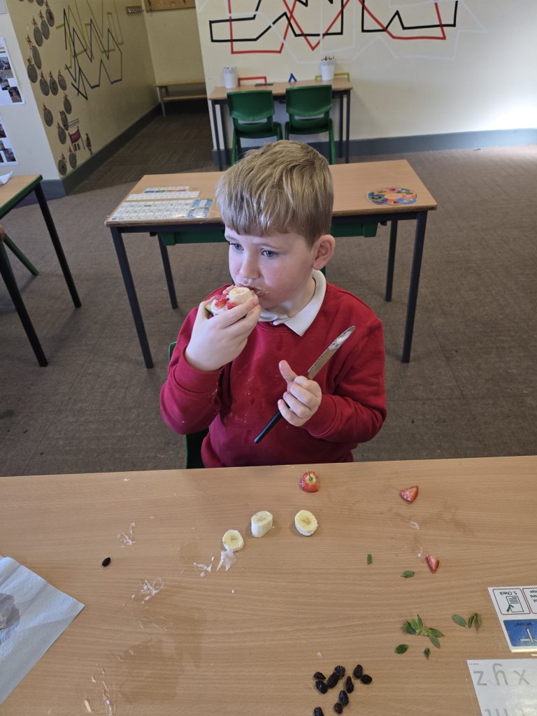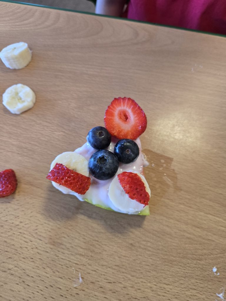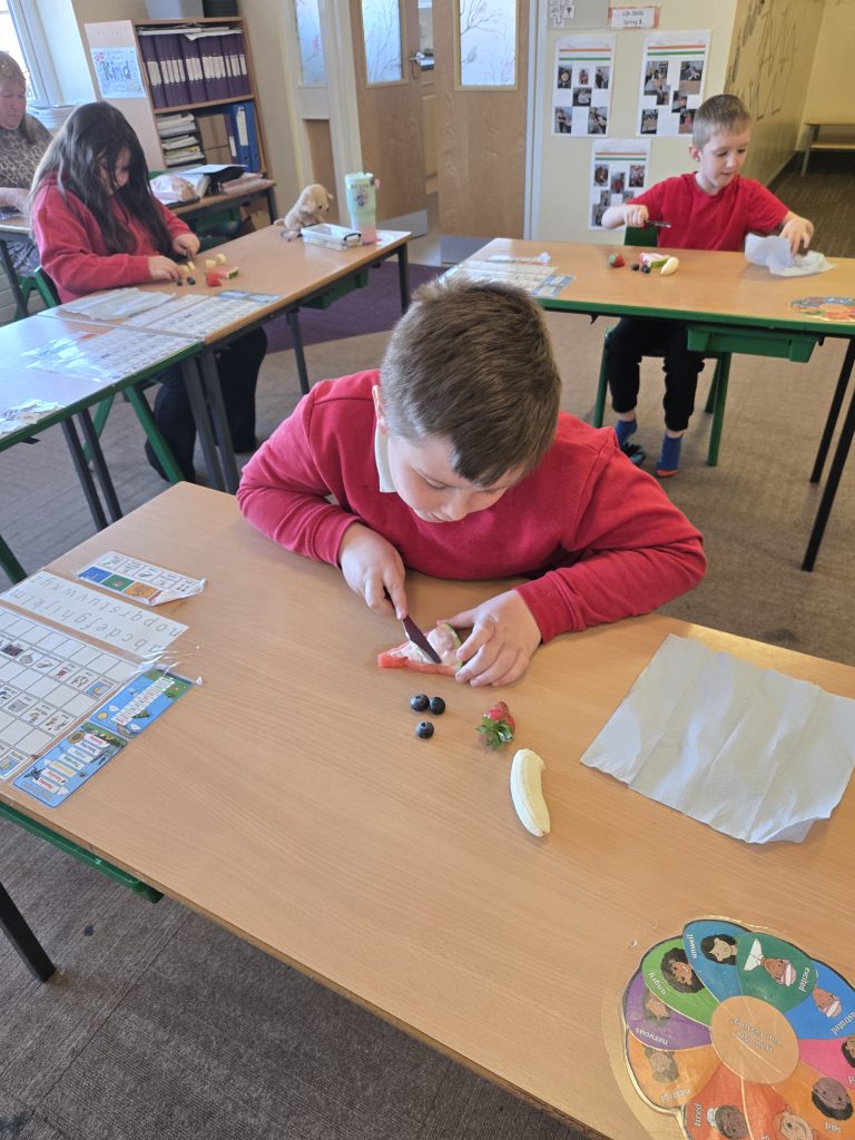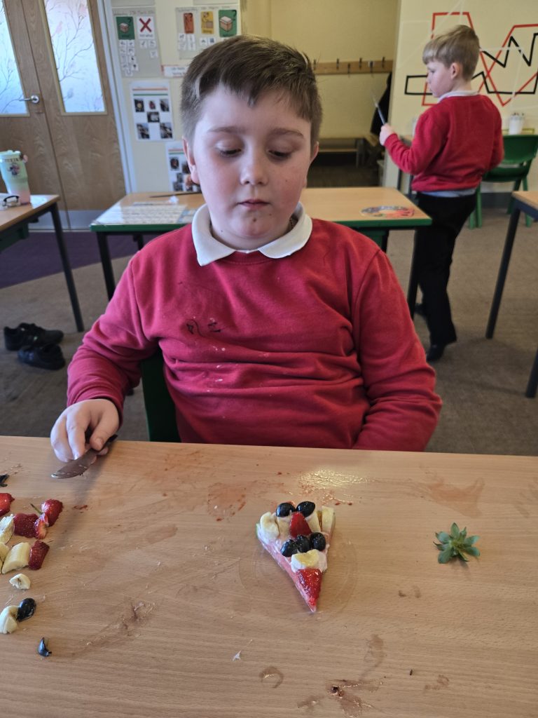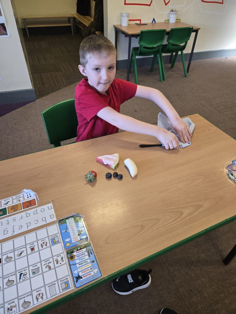 In life skills today the children have enjoyed making watermelon pizza using lots of different fruit and yoghurt