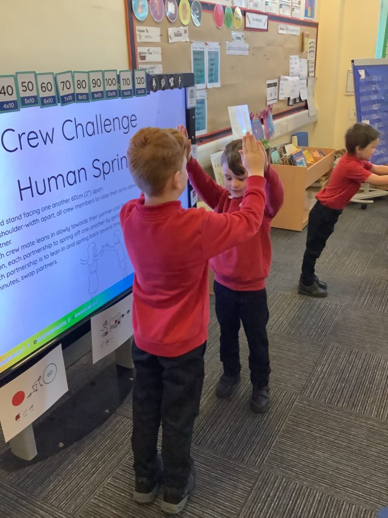 In Crew, we put our faith in each other to the test by doing this fun partner challenge. We stood opposite our partners and took a step back, then we leaned closer and leaned on each other! We bounced gently on each other’s hands to feel the security of our crew member’s hold. We giggled and squealed and had a great time but ultimately we learned to have courage in ourselves and faith in each other! What a great Crew.