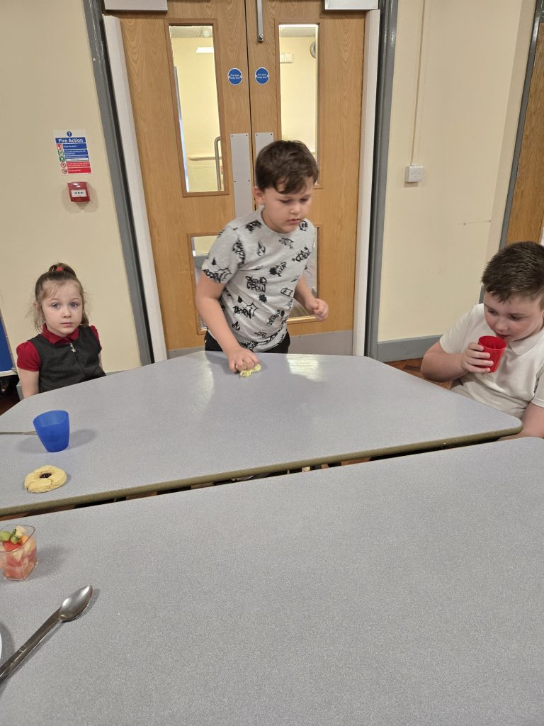 This week in our Life Skills lesson we made chocolate chip biscuits. We spoke about how we need to have clean hands and surfaces to bake. The children listened to instructions and both waited patiently while taking in turns to mix the ingredients. Getting their hands stuck in and feeling new textures, using our rolling skills and being careful placing them on the baking tray. Altogether taking 10 biscuits home for our families to share.