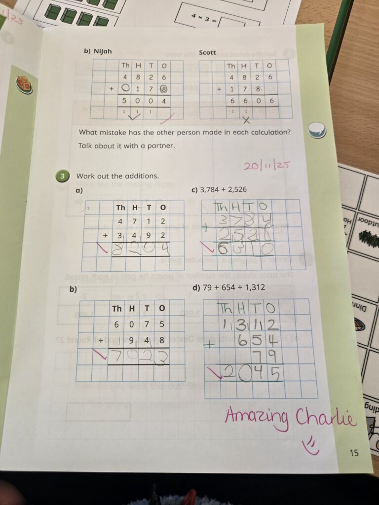 Crew Haddock did amazing in maths today. They all worked independently. Look at our work.