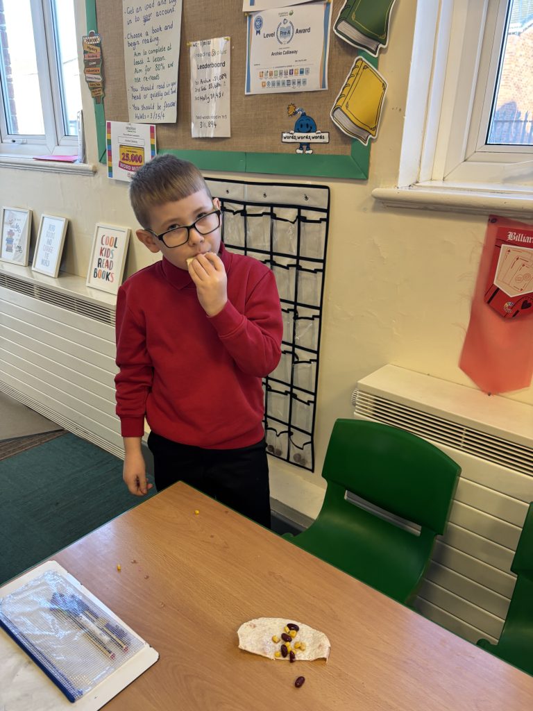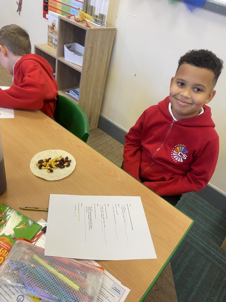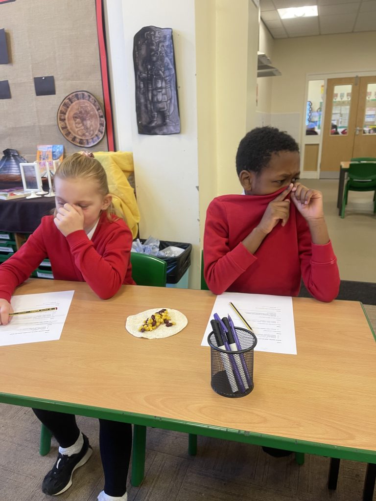 In Crew Colclough, we have completed our experience day to engage us in our new writing unit. We tasted red beans, maize and corn tortillas. The Ancient Maya diet consisted mainly of these foods. Crew Colclough demonstrated courage by trying new foods. We also created our own Mayan masks and explored why they were used.
