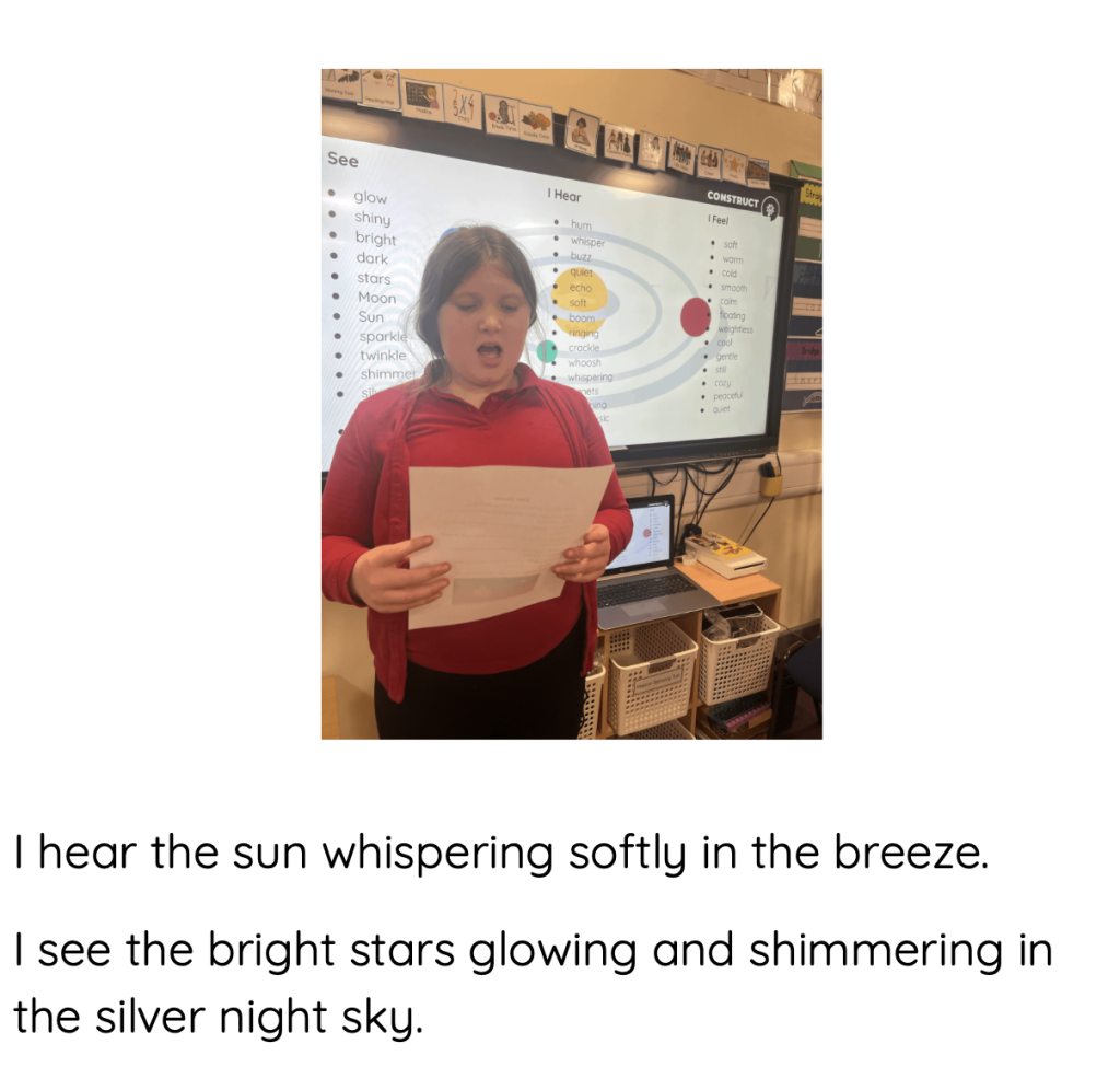 Crew Godley had a blast in ‘Create Your Own Verse’ today! We explored space through poetry, thinking about what we could see, hear, or feel, and turned our ideas into short, creative lines. We also practised reading our poems aloud to the crew with expression. It was lovely to see how hard everyone worked.