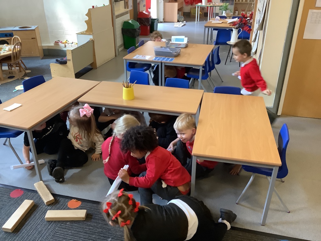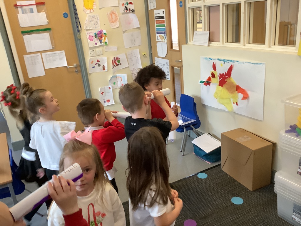In writing today they made their own straw houses from The Three Little Pigs. They used clay, straw, and cardboard as the base. They had to use lots of different skills.