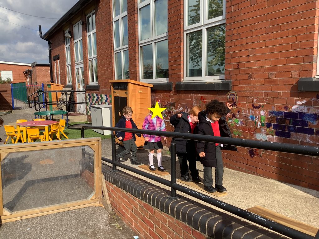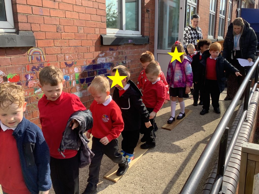 Today in p.e they worked on their balancing skills and going round cones on their scooters