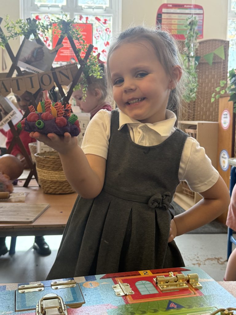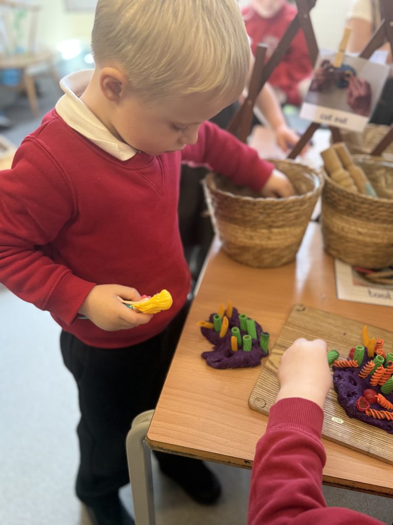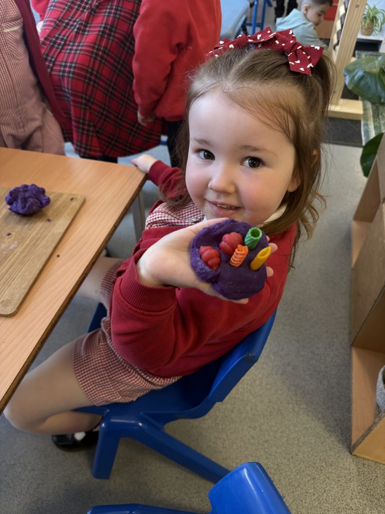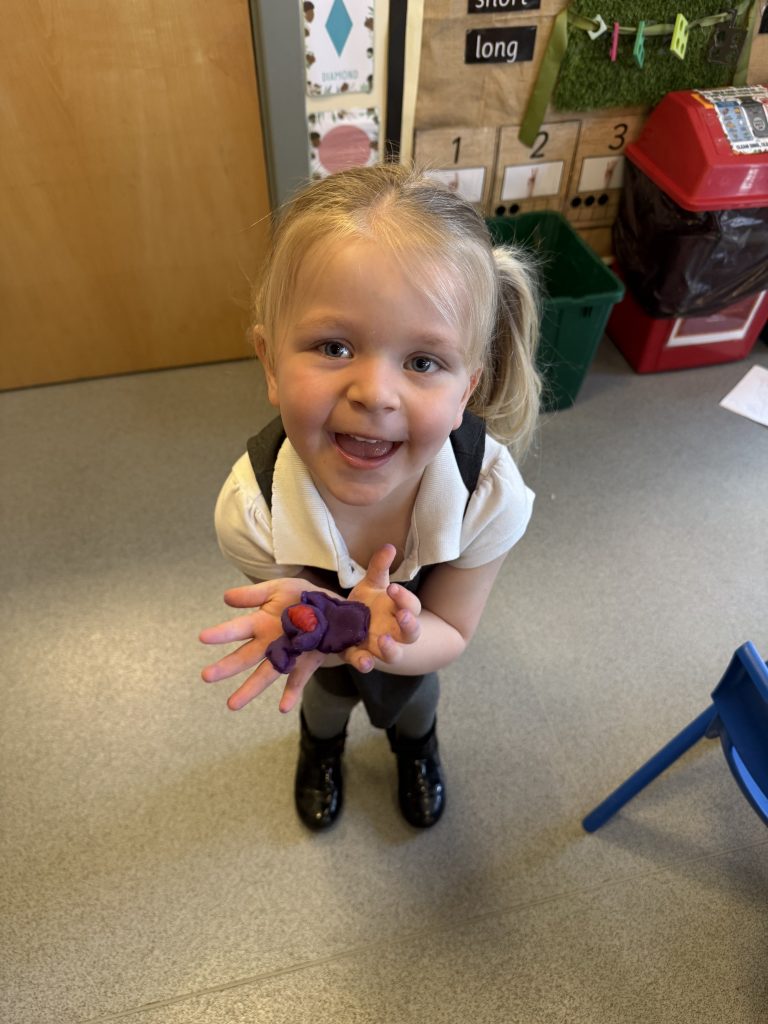 Last week, we extracted seeds from a tomato and carefully laid them out to dry over the weekend, getting them ready for planting. Learning the life cycle of the food we eat, with this were planting more edible plants each week. We also watched a video about how tomatoes grow, and the children were fascinated by a time-lapse showing the plants growing taller and taller. They loved seeing how tomatoes start off green and gradually turn red, and were excited to learn that tomatoes can come in many different colours too. We’re all looking forward to watch how tall our tomato plants will grow!