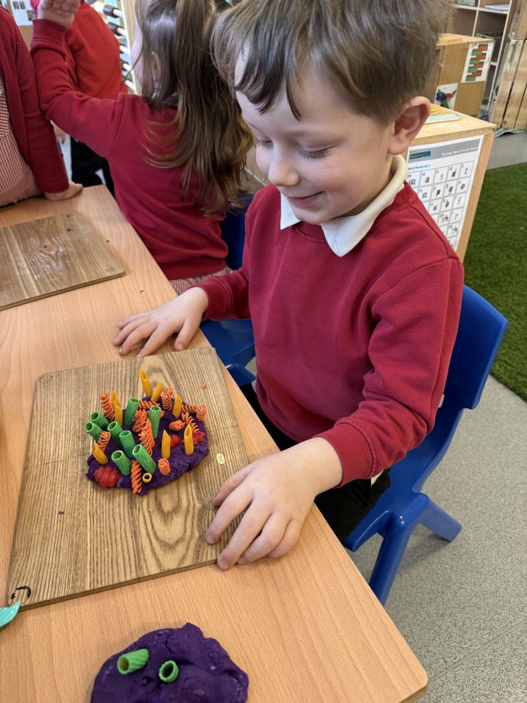 During maths this week, we have been looking at using our subitising skills in increasingly complex arrangements. We looked at arrangements of 6 and how we can use our knowledge of number bonds to 6, and our skills of subitising to 5, to help us to identify the number represented. We worked together to decide whether an arrangement was 6 or not 6, and then we used counters to replicate the pattern, before explaining how we knew the pattern showed 6, by identifying known patterns within.