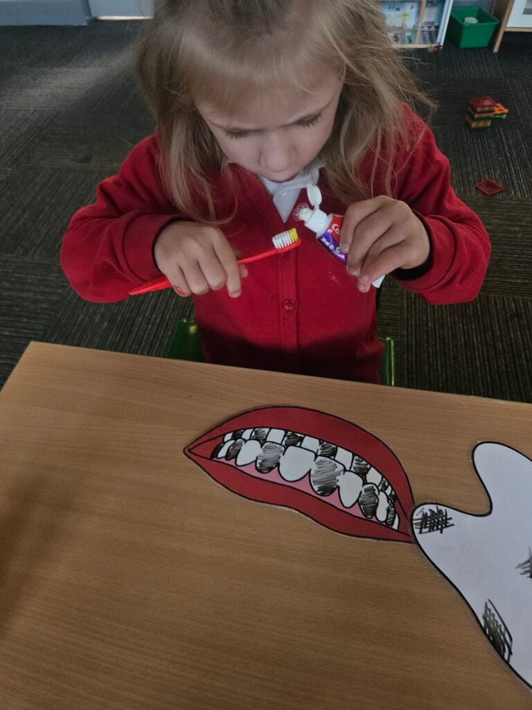 This week we tried something new in class, the life skill, cutting food with a knife and fork. The children did so well and knew to use different pressure for hard and soft food. They even tried some new foods, like Kiwi, which tasted ‘sour’ and noticed the different taste with red and green pepper, the red one was ‘sweeter’.