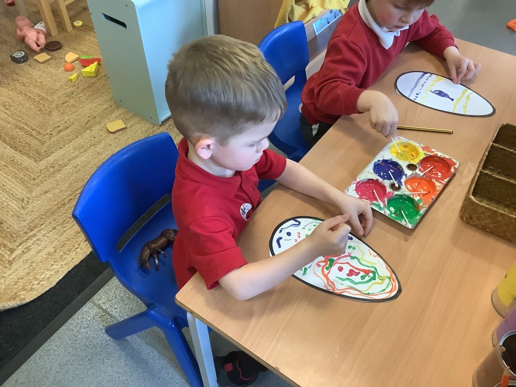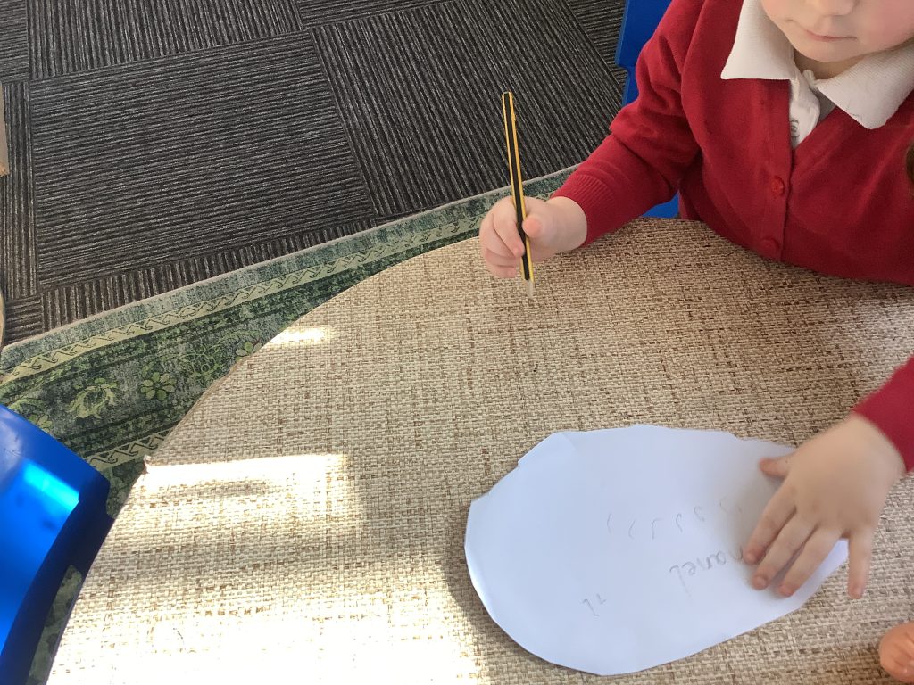 Using their “pinchy fingers” to pick up the rabbits helped to strengthen their fine motor skills, supporting Physical Development—an important foundation for later writing.