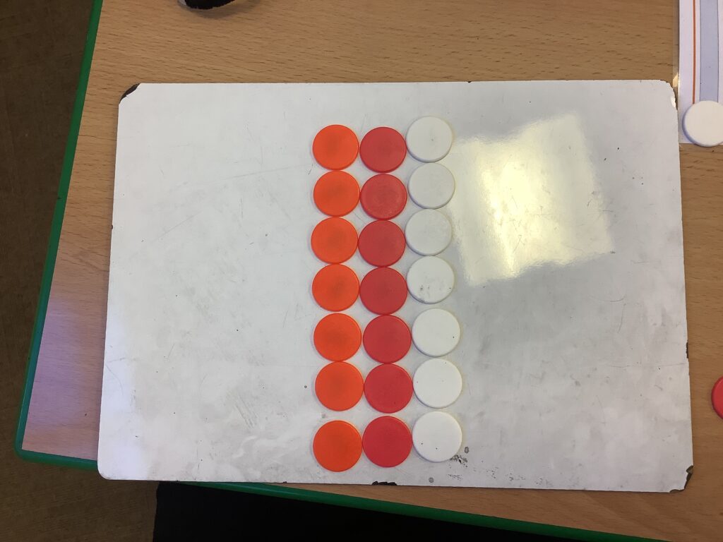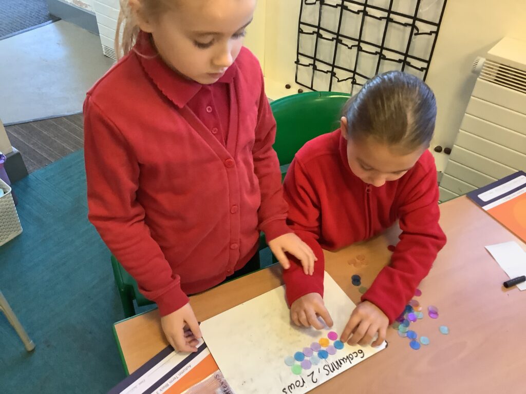 Before starting our addition and subtraction unit we have been looking at part whole models. We used our counters to show how a part + another part creates the whole one.