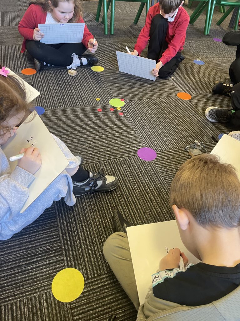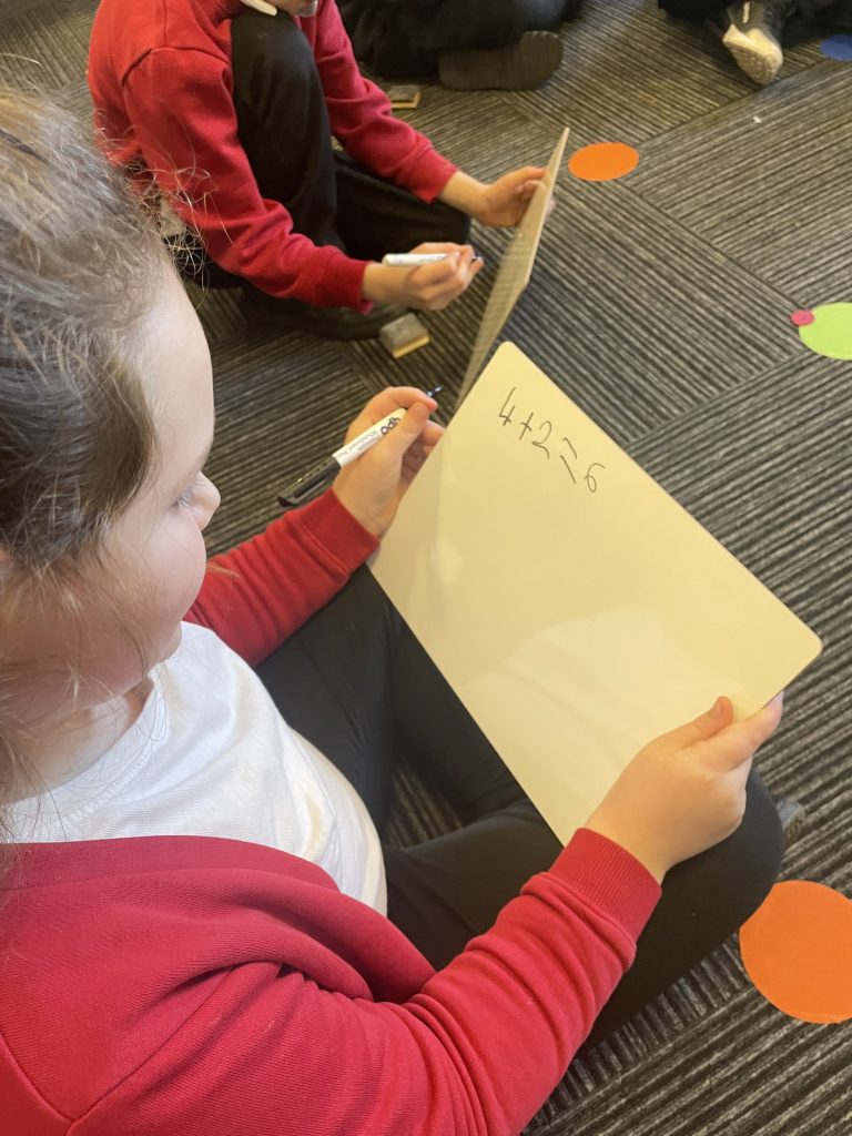 Crew Farrow have been creating sums from counters, using the plus and equals sign. Well done to everyone who recorded their sum on whiteboards!