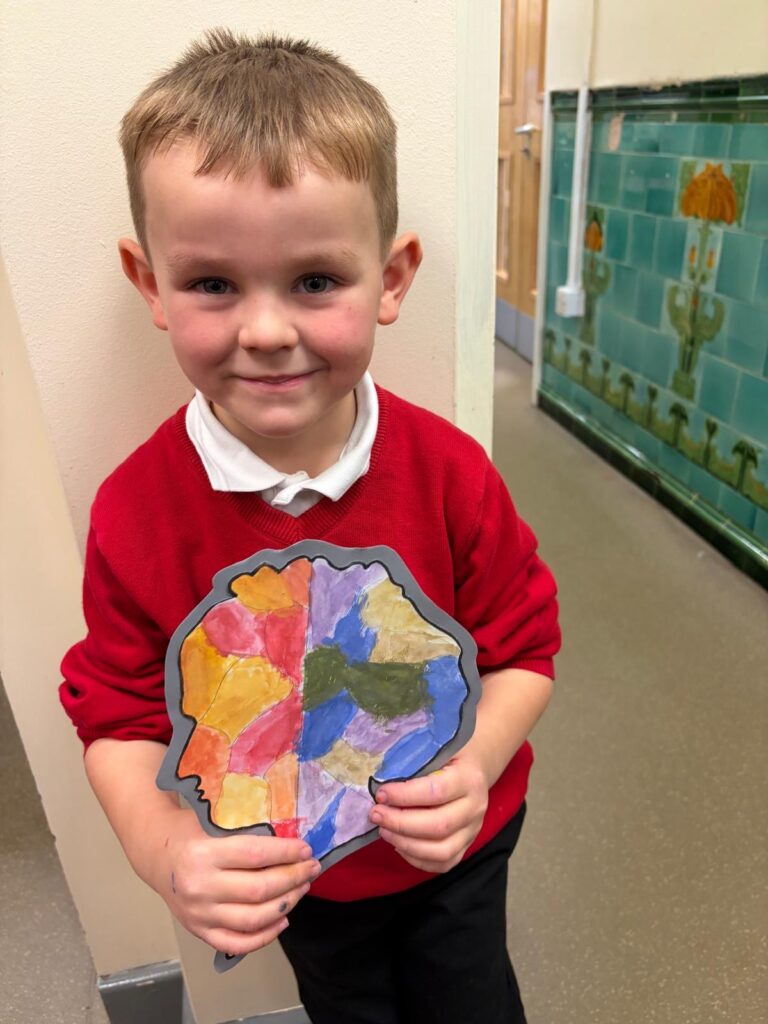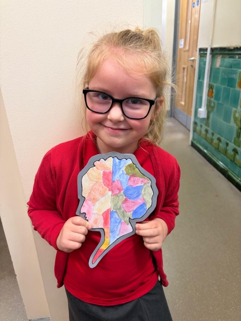 In Crew Barber, we have been looking at the artist Paul Klee and looking at how he uses colours in his artwork. We have learnt how to mix primary colours (red, blue and yellow) to make secondary colours (orange, purple and green). We have also learnt about hot and cold colours and how that creates mood in our artwork. Look at our fab Florence Nightingale in the style of Paul Klee.