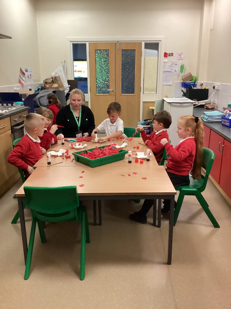 Crew Ramsay have been working in groups with our new student teacher, Miss Bagworth to create poppy art for Remembrance Day. We had 2 minutes of silence to honour the fallen and we celebrated by making paper tissue poppies. Here we are getting crafty and talking about our ‘Be Kind’ HOWL for this significant event.