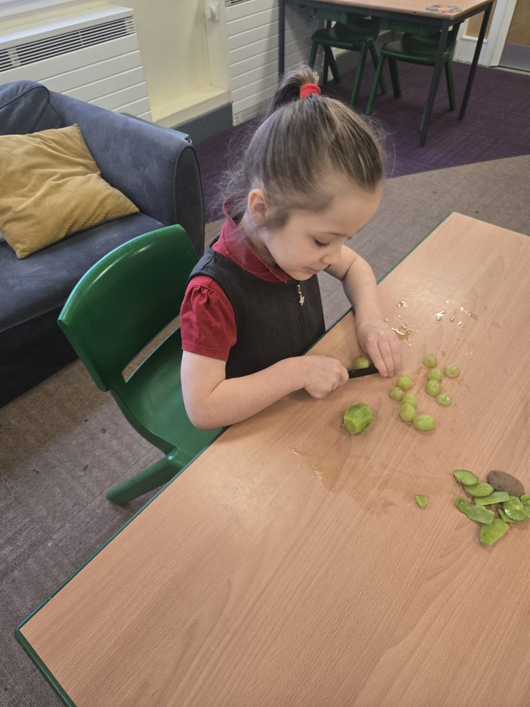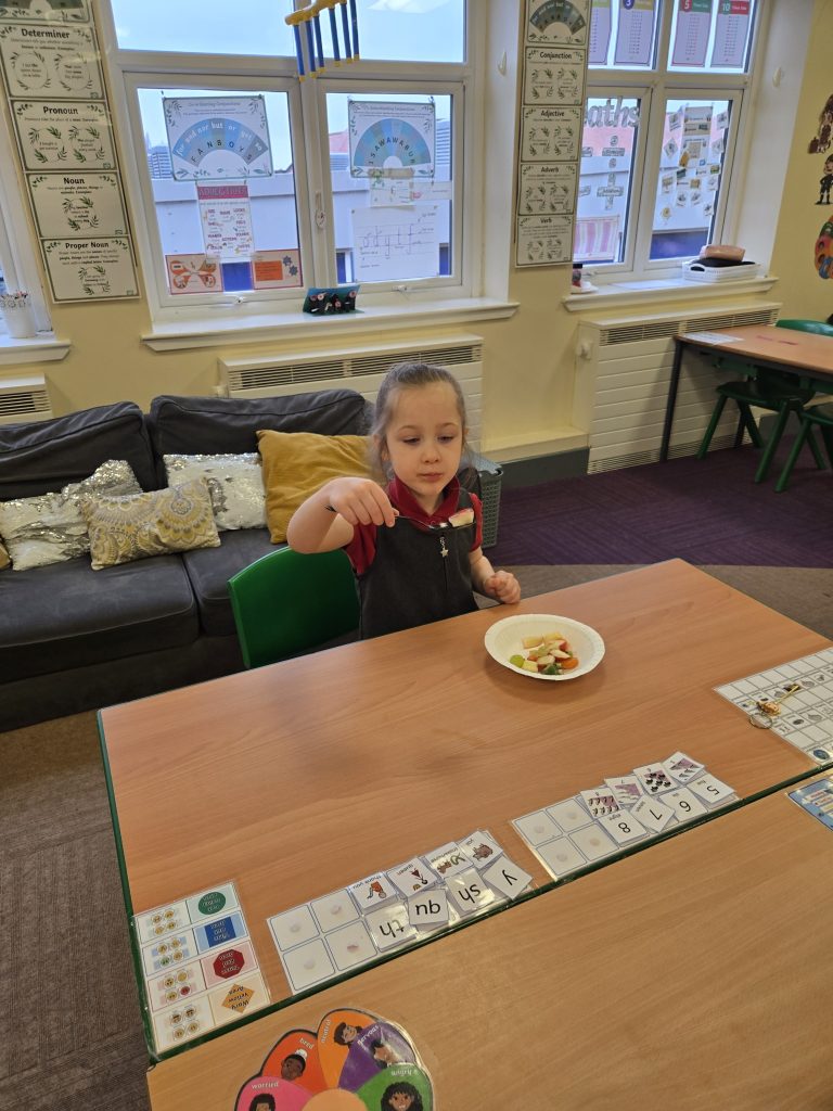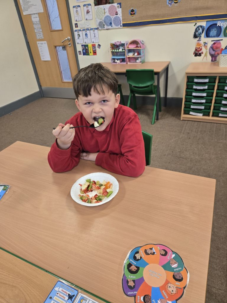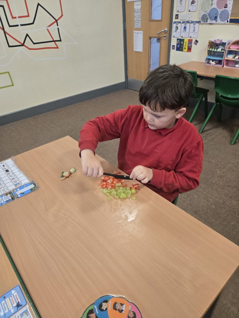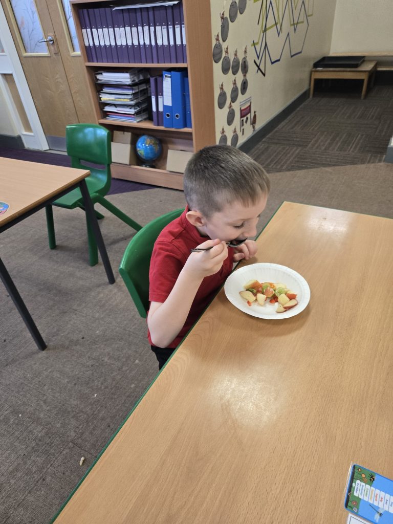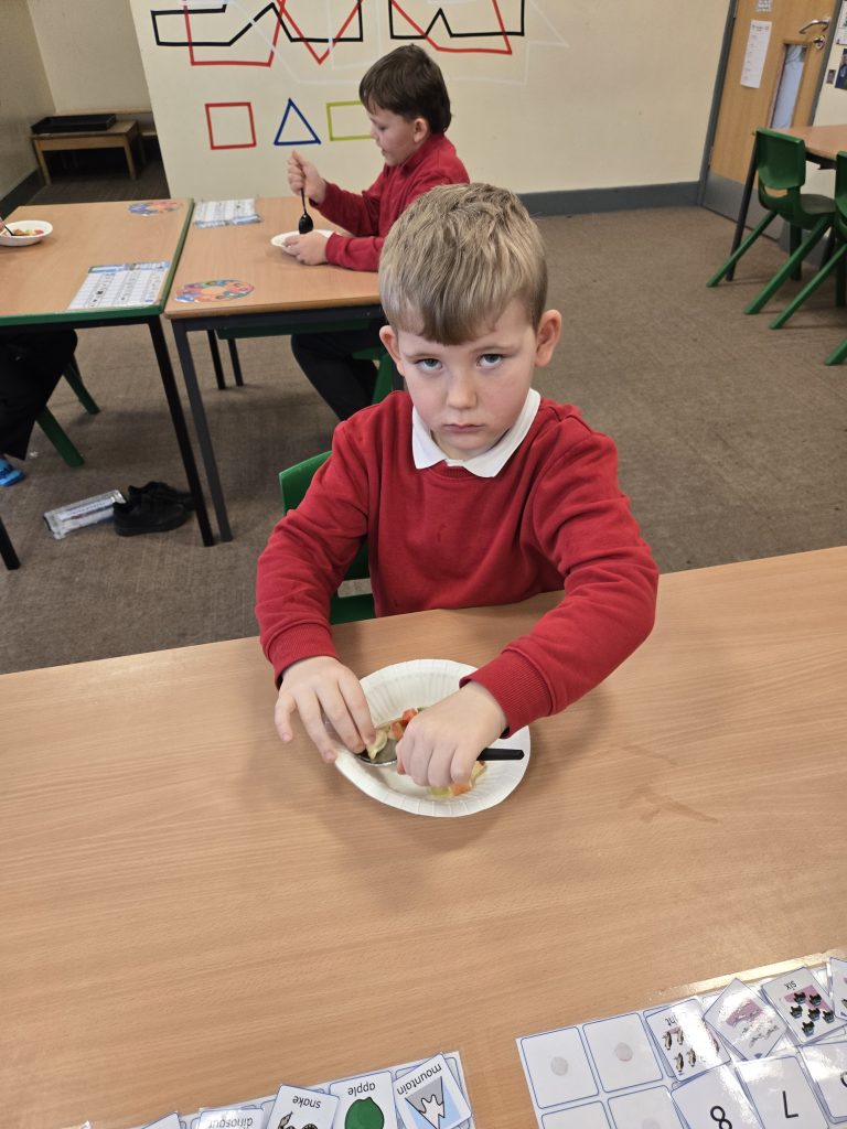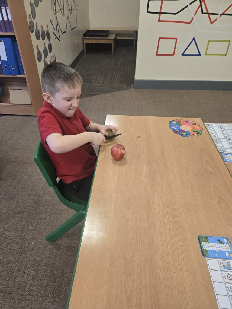 Today in life skill they made their own fruit salad. Fruit is one of are 5 a day that are body needs. They used their cutting skills to slice the fruit and then put it all into a bowl.