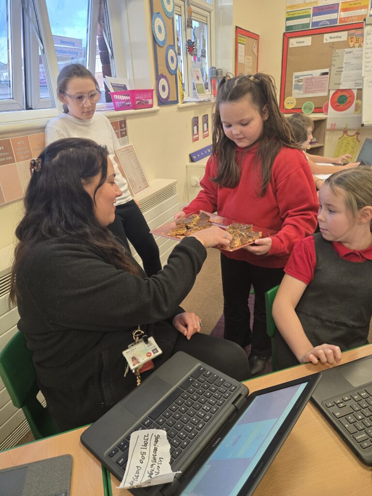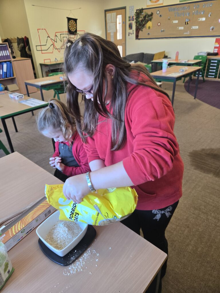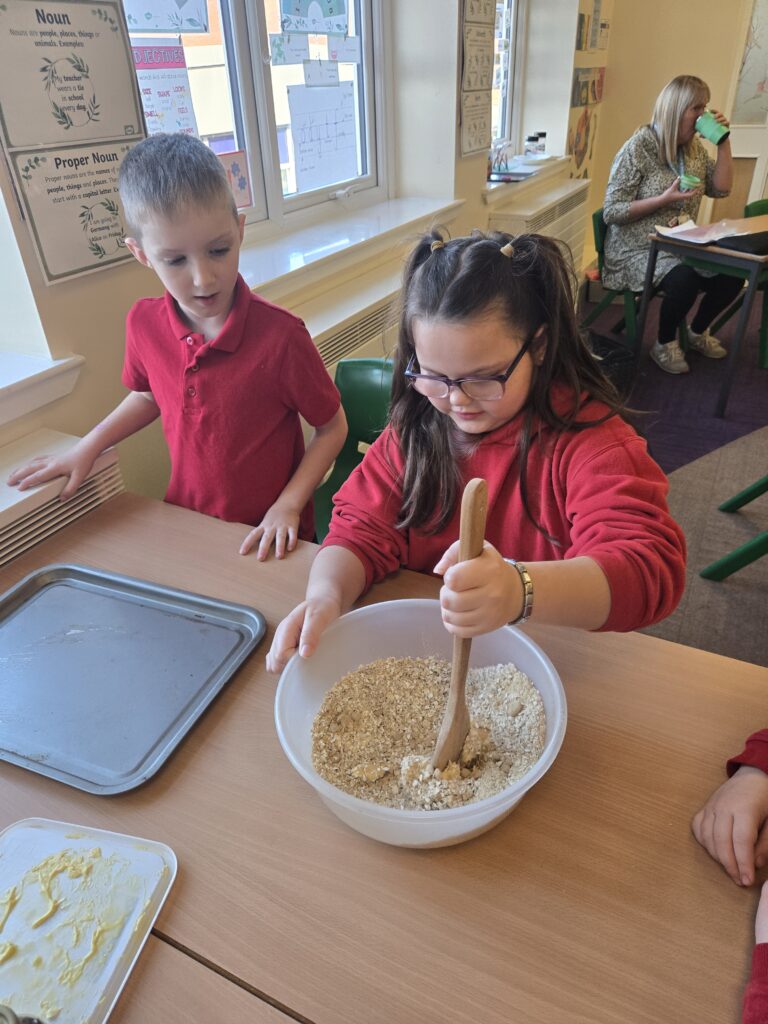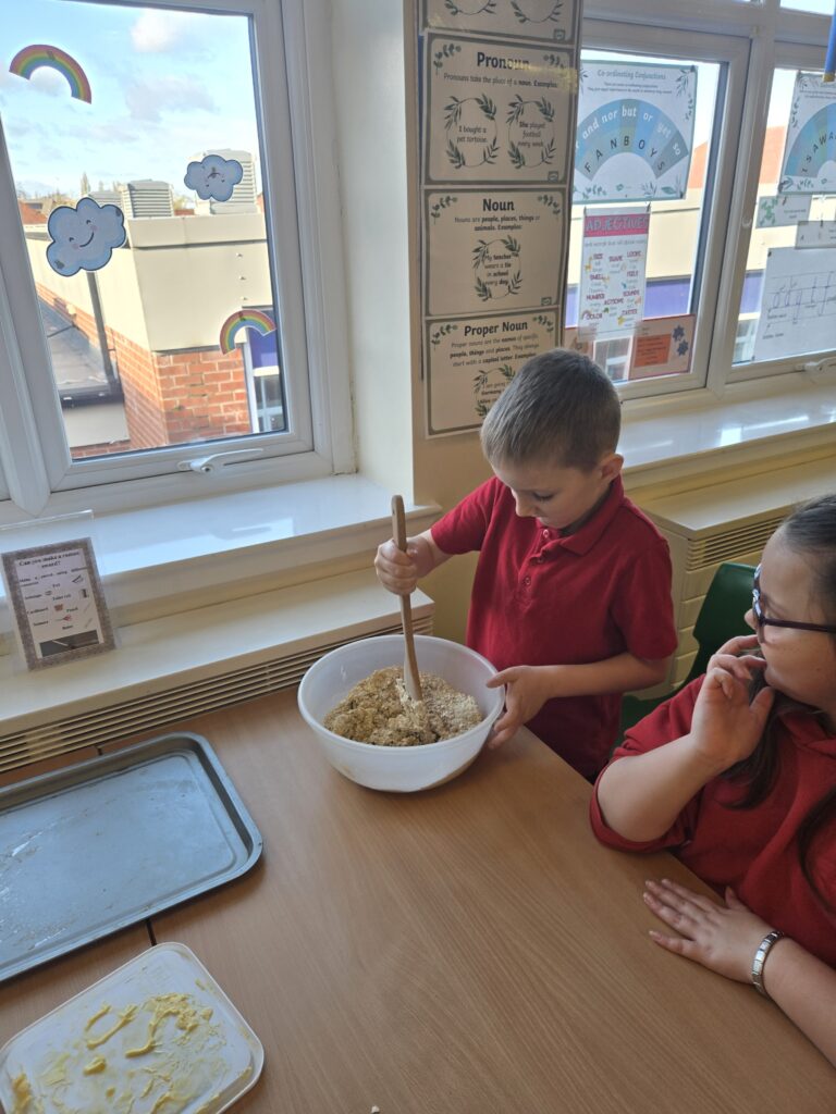 In Crew Haddock today the children made flapjack. They were so kind in taking turns and then they shared it with staff around school. This is their favourite thing to do.