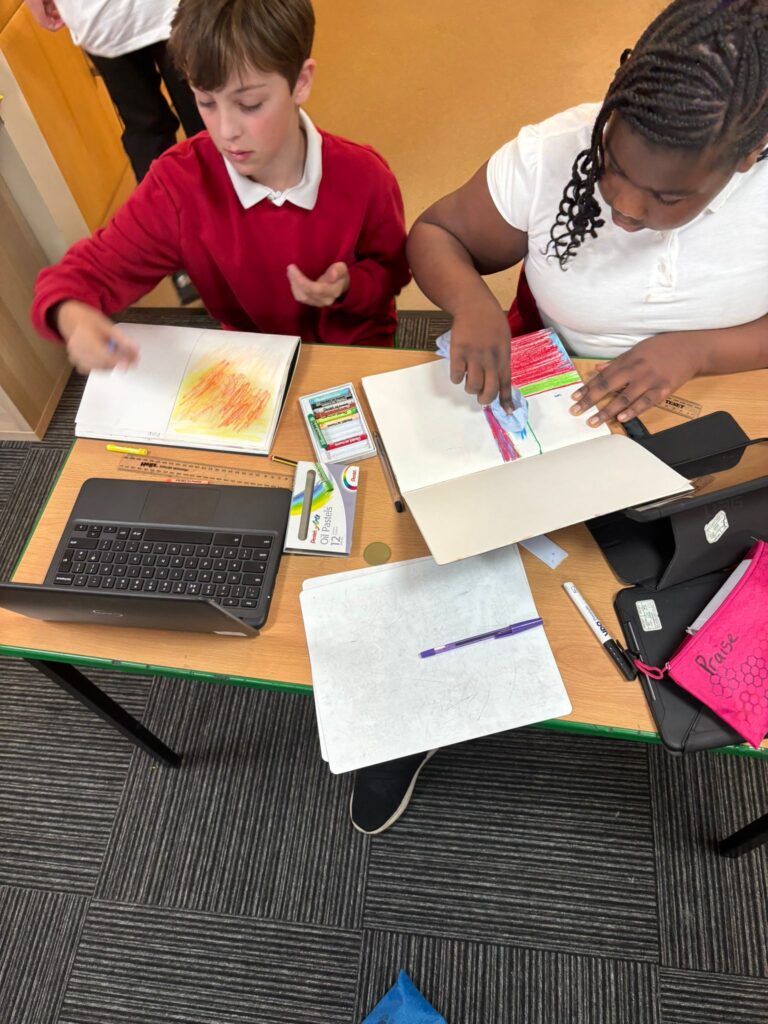 As part of the creation of our final product for our Expedition, ‘Lungs of The Earth’, Crew White have been exploring oil pastel techniques along with research the abstract artist, Frank Bowling. We used Google Classroom again to help develop independence and organisation. We look forward to sharing our final designs with you soon!