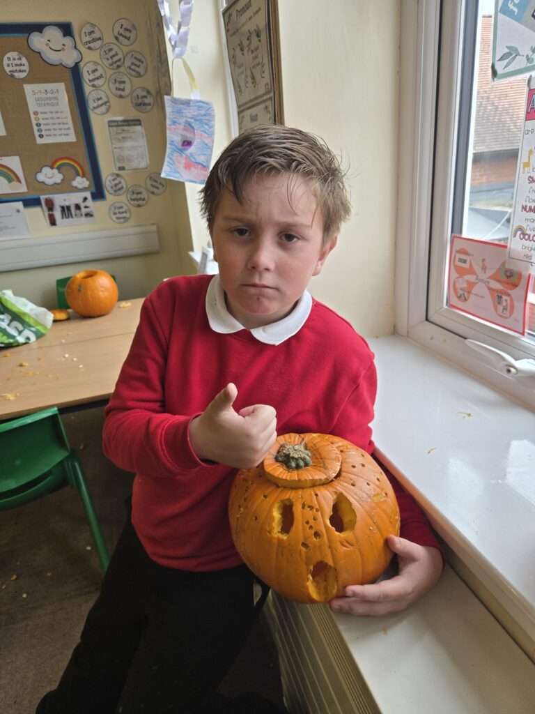 Pumpkin carving 16th October 2025Tracy Haddock Today Crew Haddock enjoyed craving pumpkins ready for halloween.