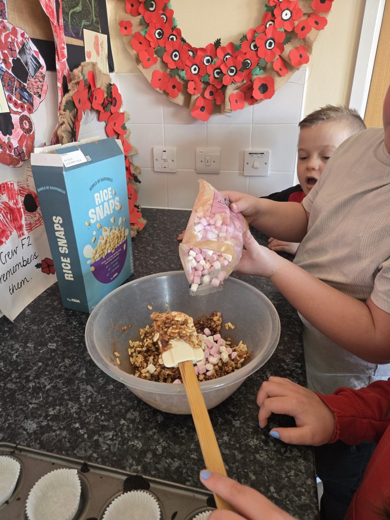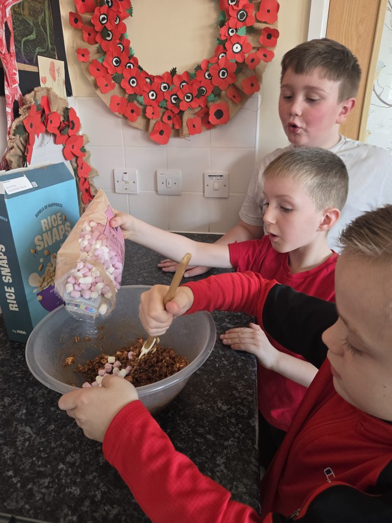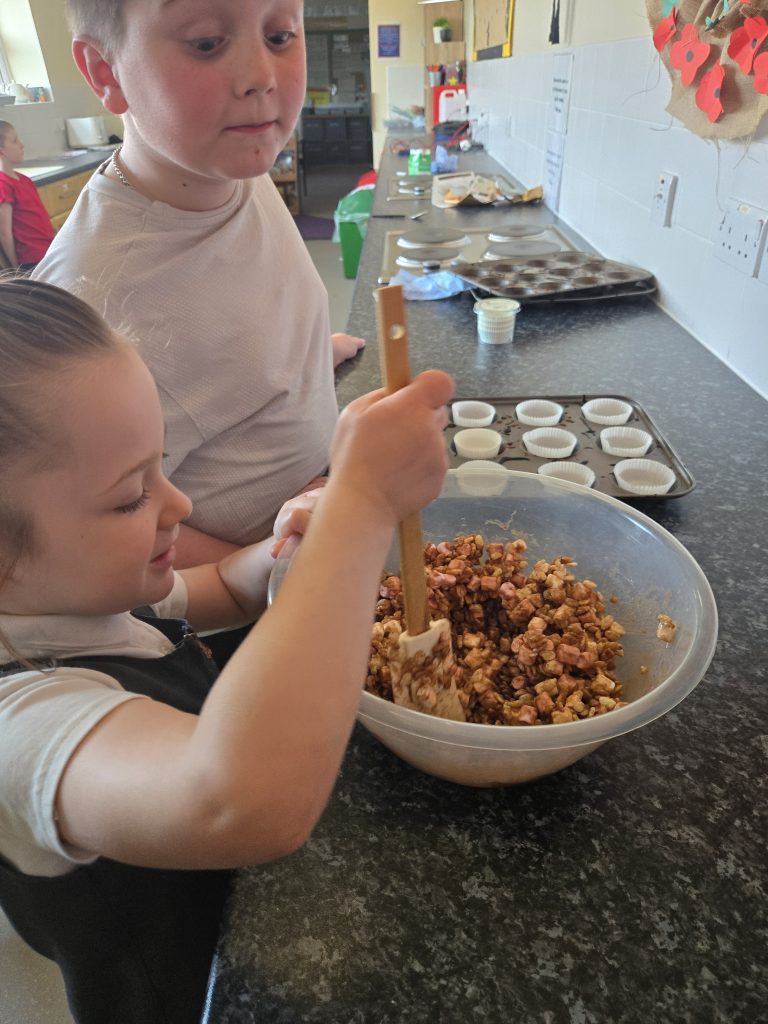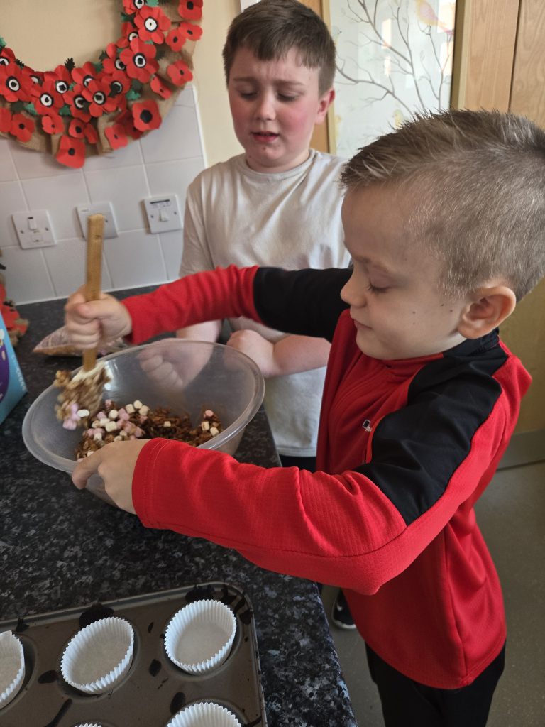 Rice krispie buns 19th March 2026Tracy Haddock Today in life skills the children made chocolate rice krispie buns with marshmallows