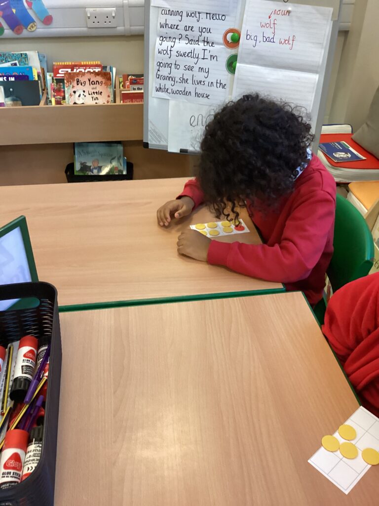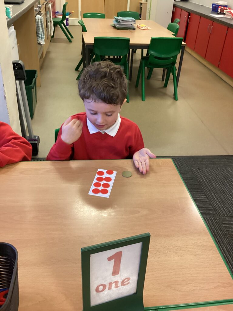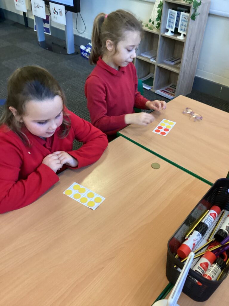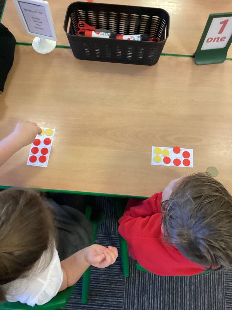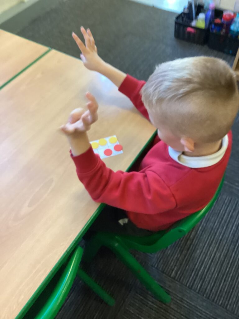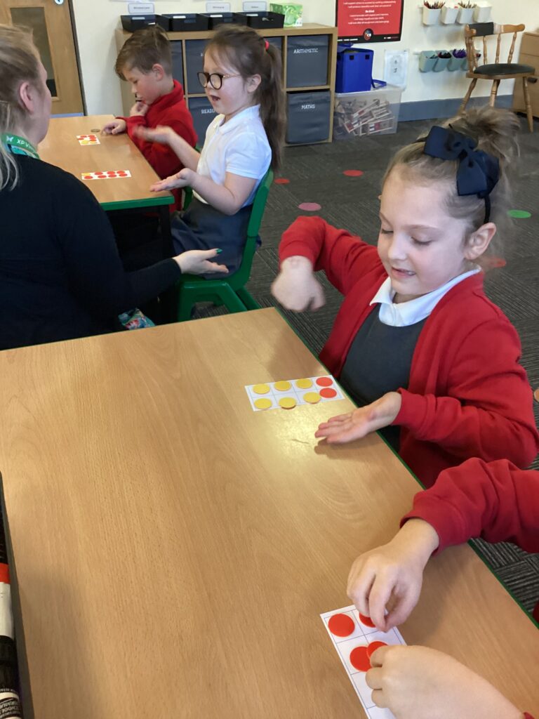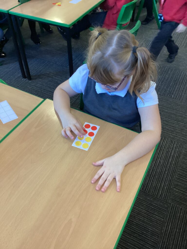 We have been using our 8 grids to make number bonds of 8! We love that we can see the two parts of 8 using double sided counters and we were all able to verbally chant the systematic number bonds independently. We love to use our fast maths eyes!