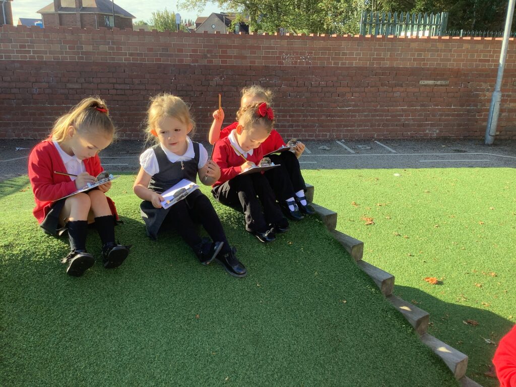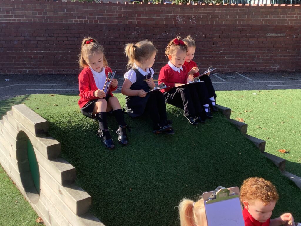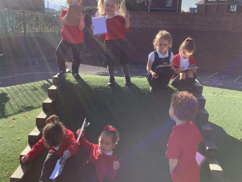 This week the nursery children went on an environmental walk to see what they could hear. We heard a bus, ambulance, birds, and much more! The children gave meanings to the marks they made on their clip board to help them remember the sounds. This was also a great opportunity to practice our lines and circles. Then the children came back to the classroom and tried to think of the sounds we were Fredding. They were amazing at orally blending the sounds! We can’t wait to go on another walk soon.
