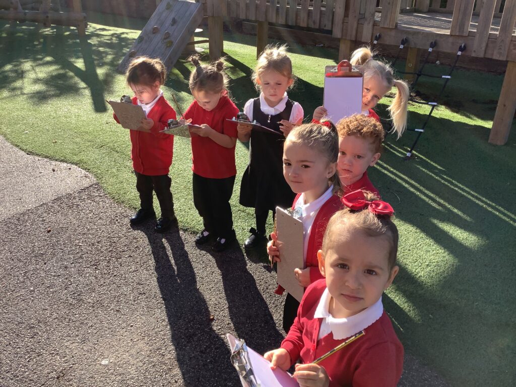 This week the nursery children went on an environmental walk to see what they could hear. We heard a bus, ambulance, birds, and much more! The children gave meanings to the marks they made on their clip board to help them remember the sounds. This was also a great opportunity to practice our lines and circles. Then the children came back to the classroom and tried to think of the sounds we were Fredding. They were amazing at orally blending the sounds! We can’t wait to go on another walk soon.