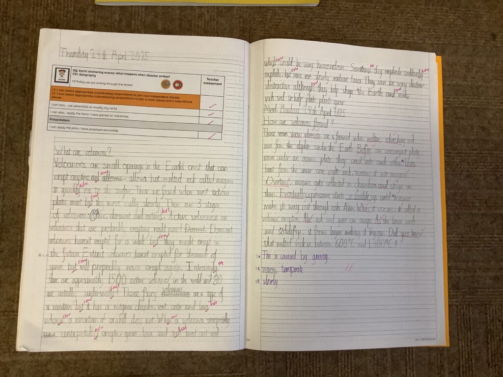 We are working hard on our information texts in Crew MT. We are really focusing on conjunctions and adverbials along with using our knowledge on volcanoes to compose our writing.